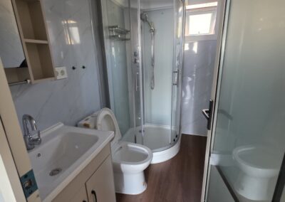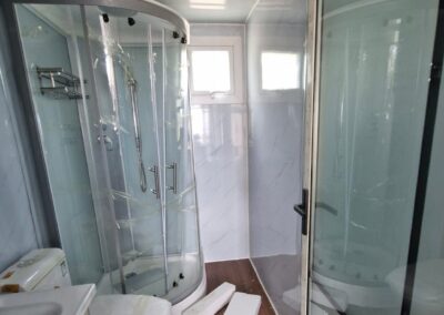 • Баня: душ, плъзгаща се стъклена врата