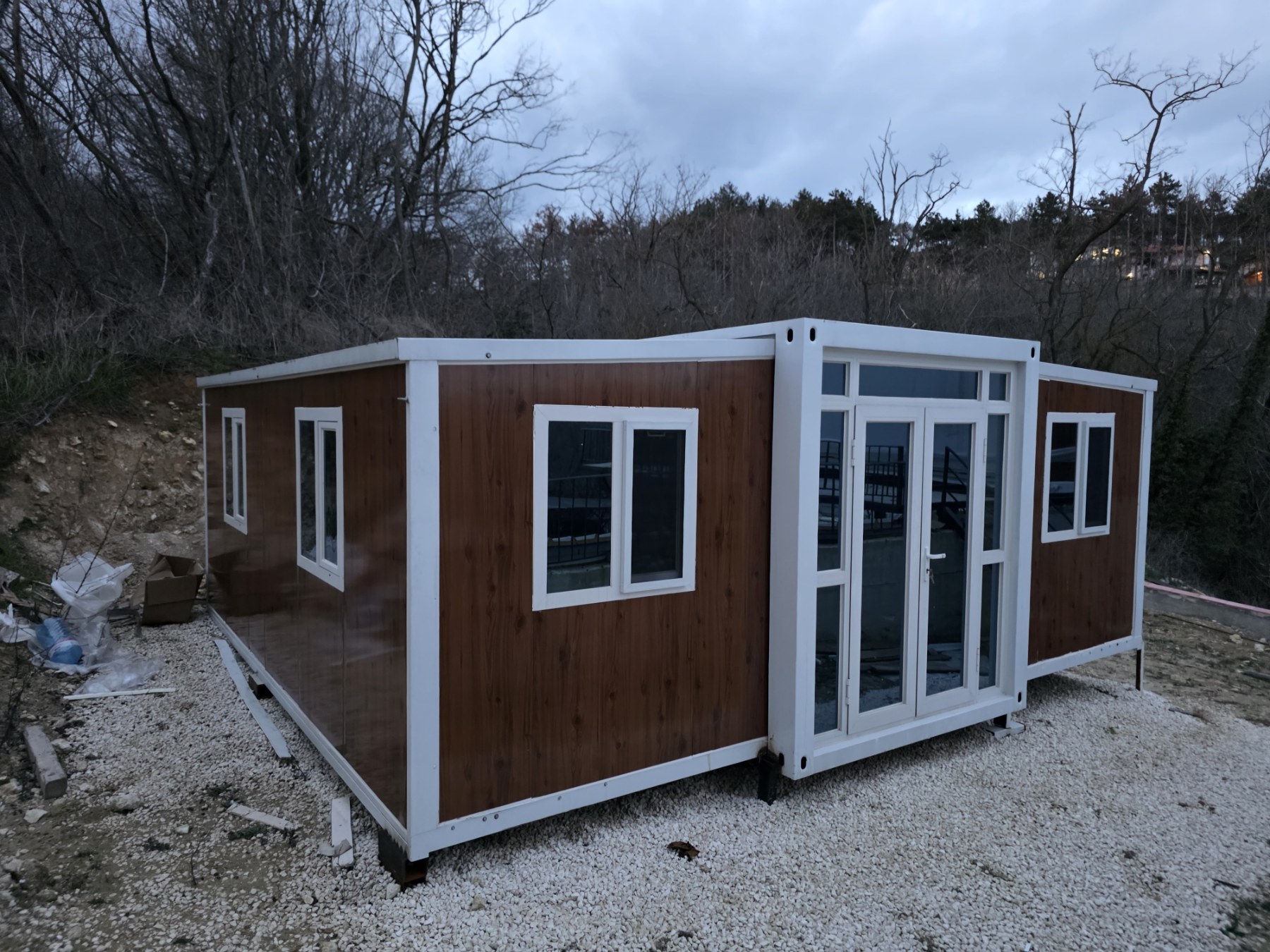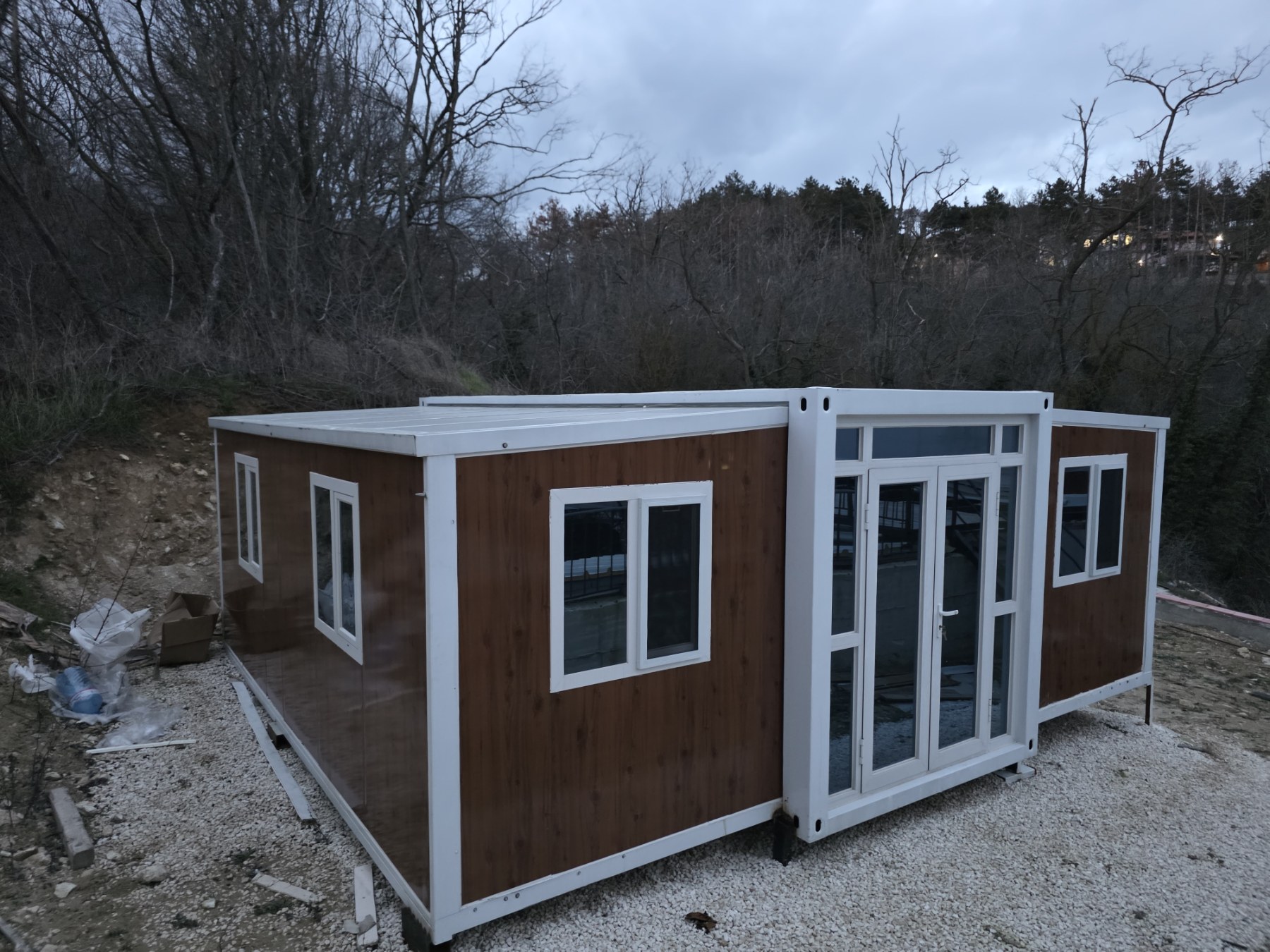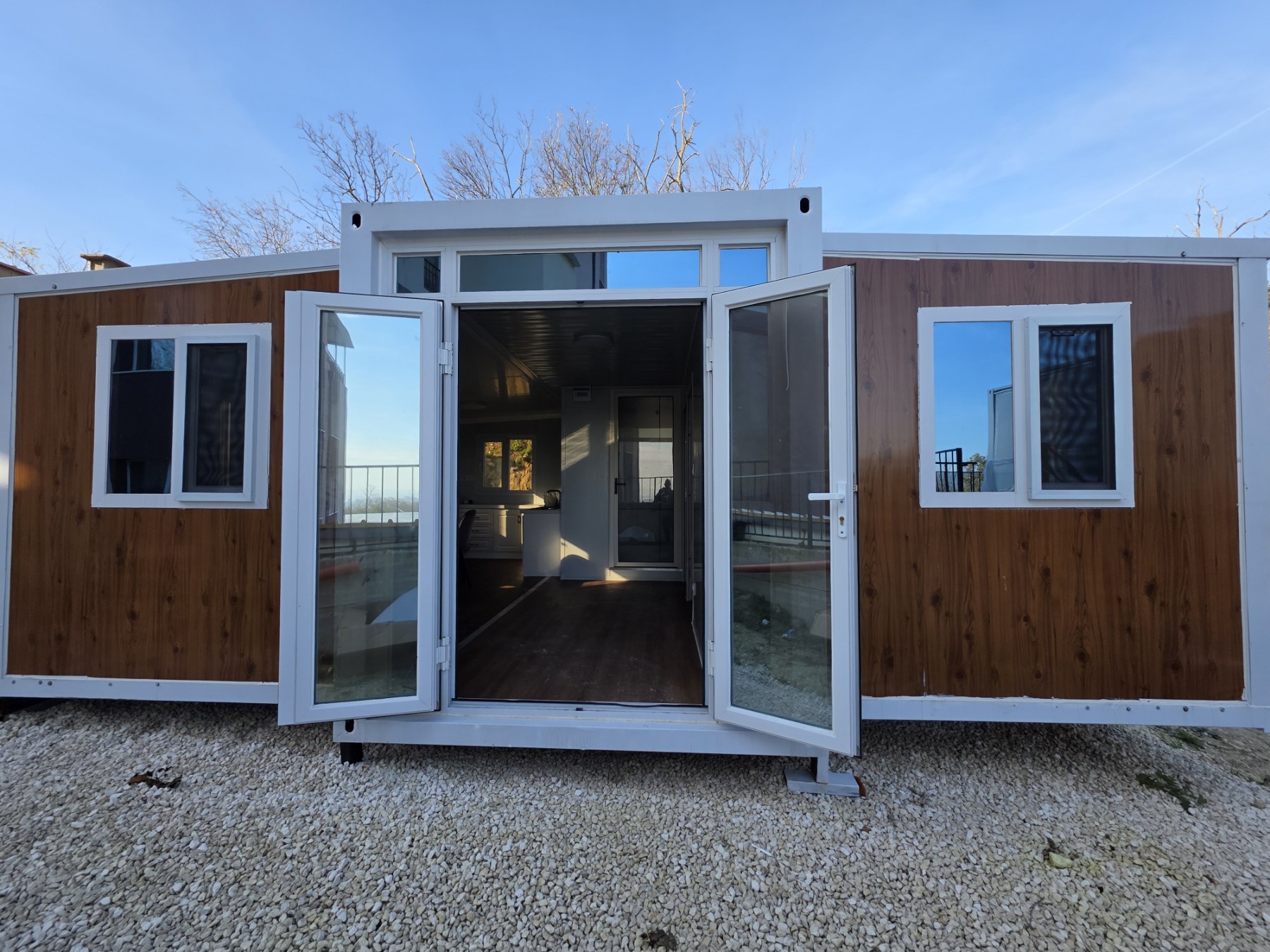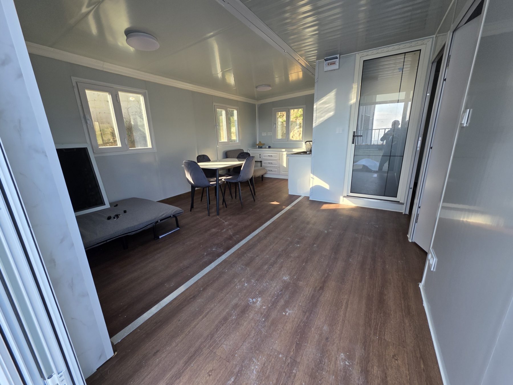 • Прозорци: 8 алуминиеви стъклени прозореца тип „счупен мост“ (930*930 мм/врата)