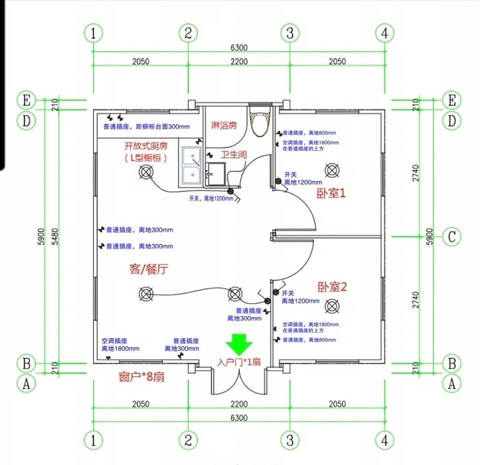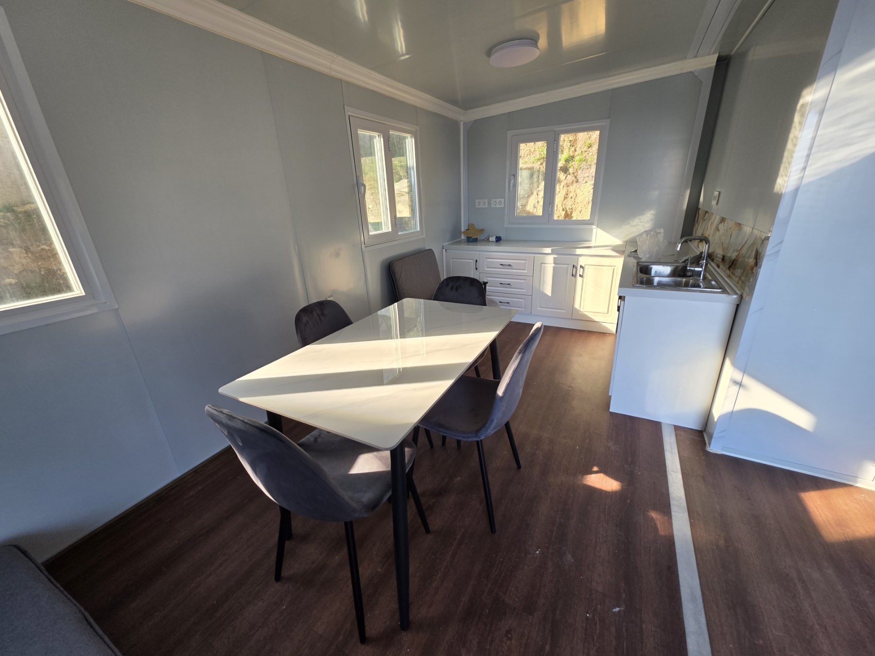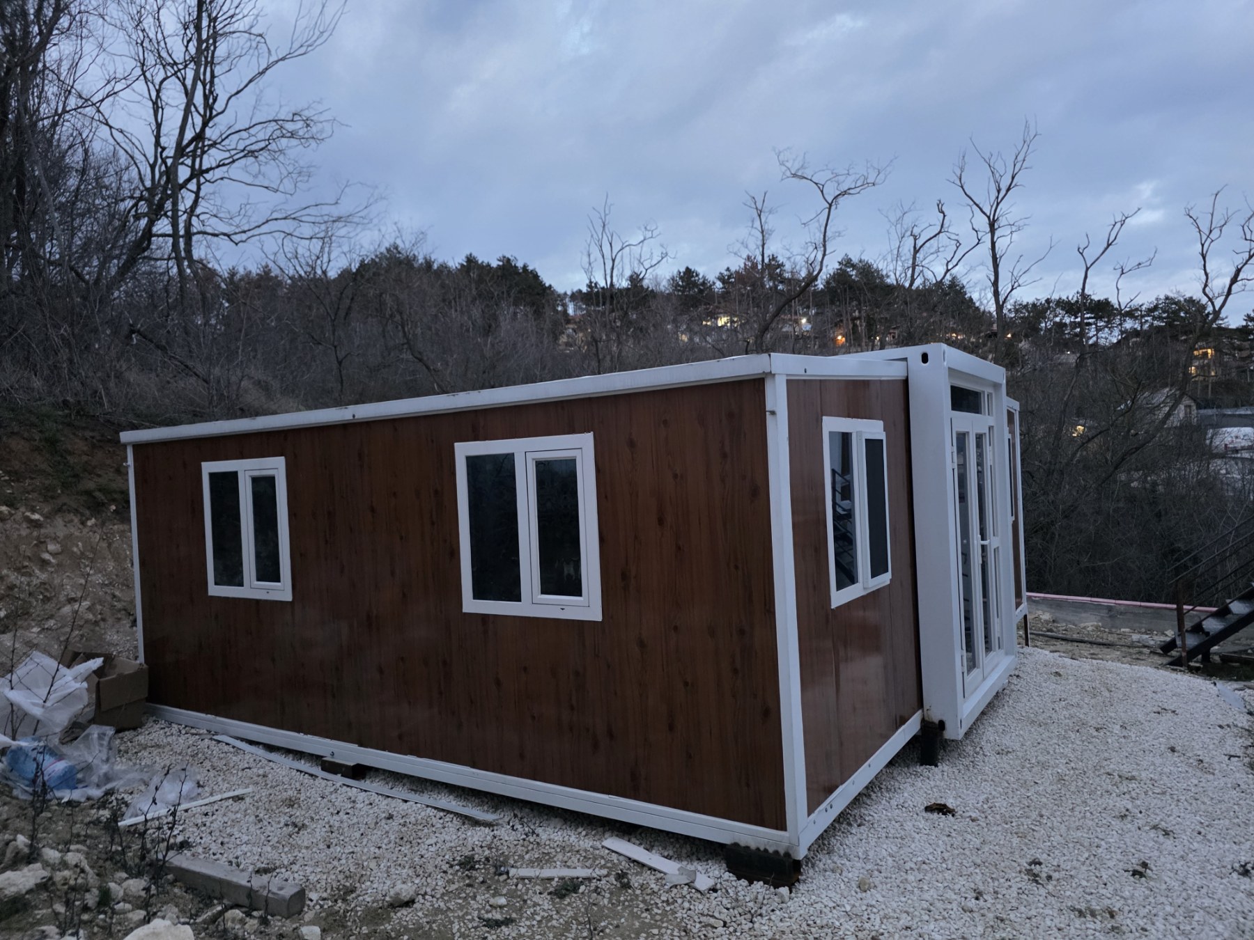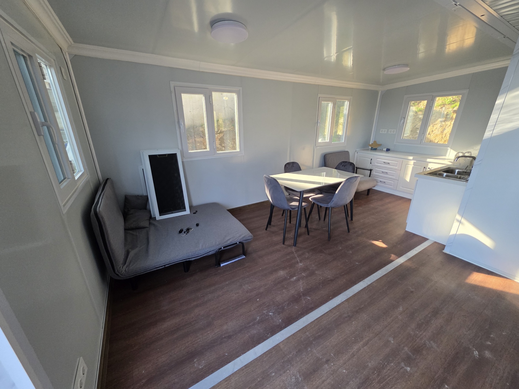 • Прозорци: 8 алуминиеви стъклени прозореца тип „счупен мост“ (930*930 мм/врата)