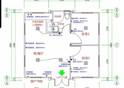 • Електрическа разпределителна система: ключове и контакти, кръгли таванни осветителни тела и др.